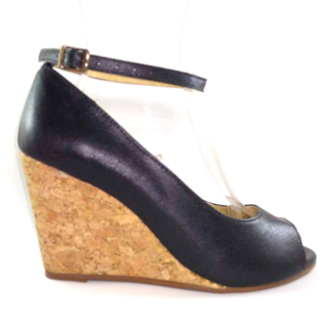Peep Toe Anabela preto, com fivela no tornozelo que pode ser retirada caso não queira usá-la.